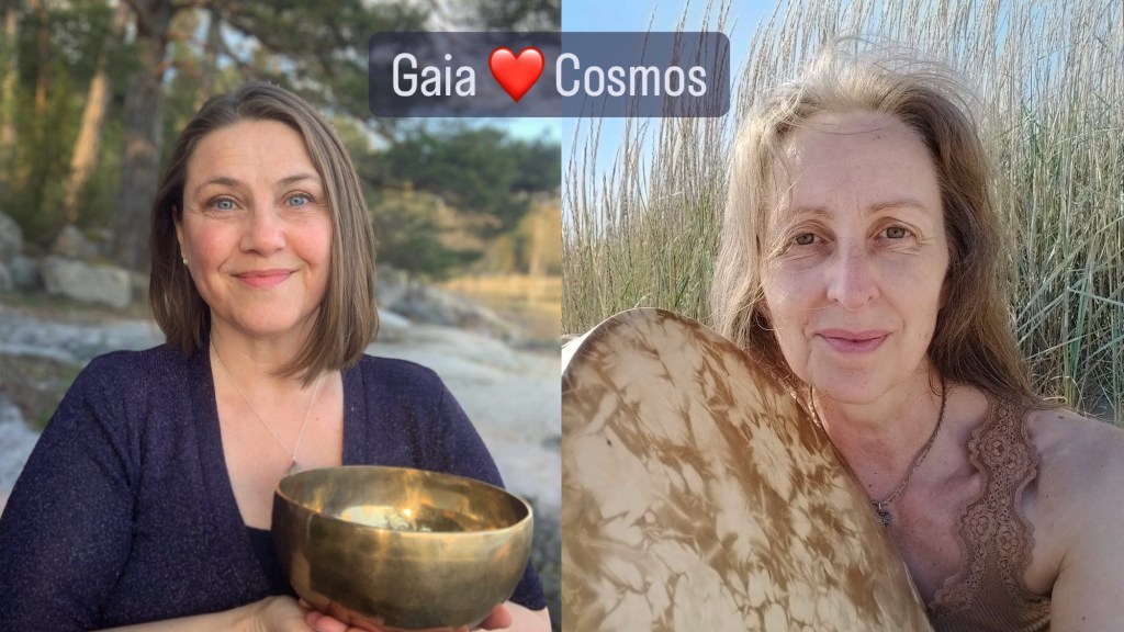 Klo 19.30 – 20.30 Djupavslappnande Ljudresa med Gaia ❤️ Cosmos Äänimatka; Nina Pörn och Pia Lindvall / 10€ (på svenska sekä suomeksi)