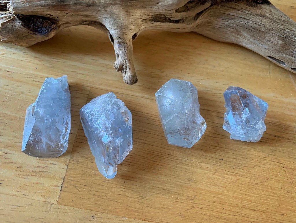 Celestin/Celestit Spets Medium (c 3-4 cm x 2cm). Klara vackra himmelsblåa spetsar av celestin. Dessa kristallspetsar har en produktkod som du ser i texten under produktbilden.